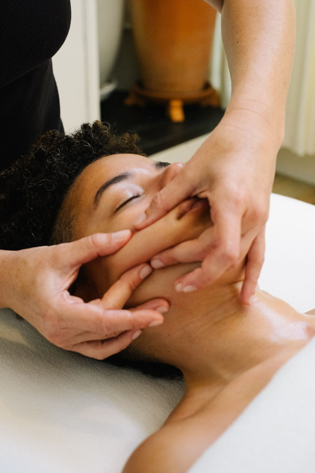 Our signature treatment. A deeply intentional, hands-on facial massage ritual designed to lift, tone, and restore. This treatment is crafted to honor the ritual of touch, slow, rhythmic, therapeutic movements that melt tension, soften expression lines, and bring the skin back into harmony.
